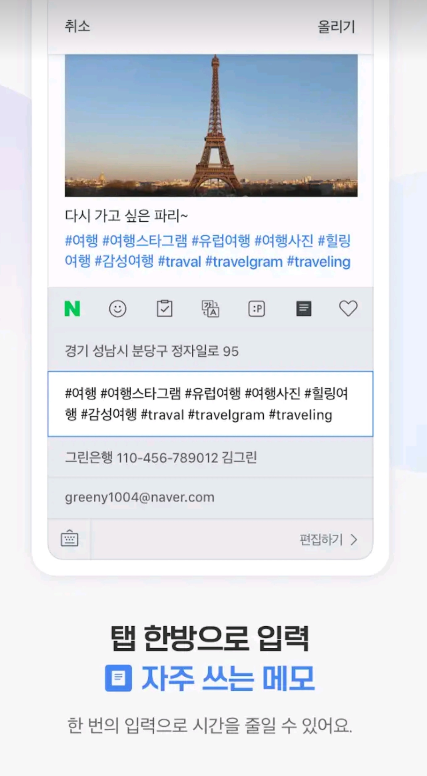 자주 쓰는 문구를 등록해 편리하게 입력할 수 있고,