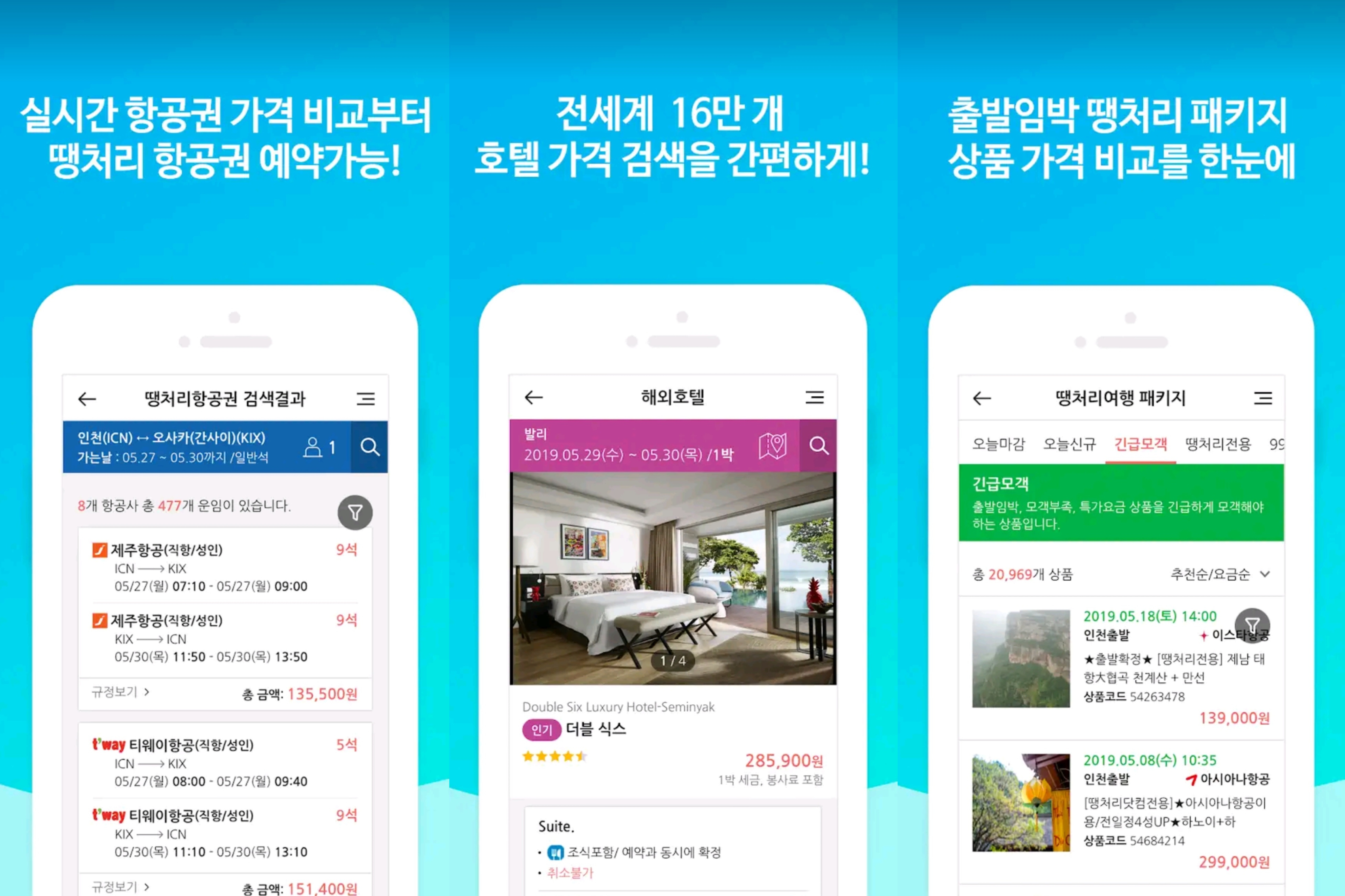 목적지로, 가격으로, 일정으로 편하고 빠른 검색지원