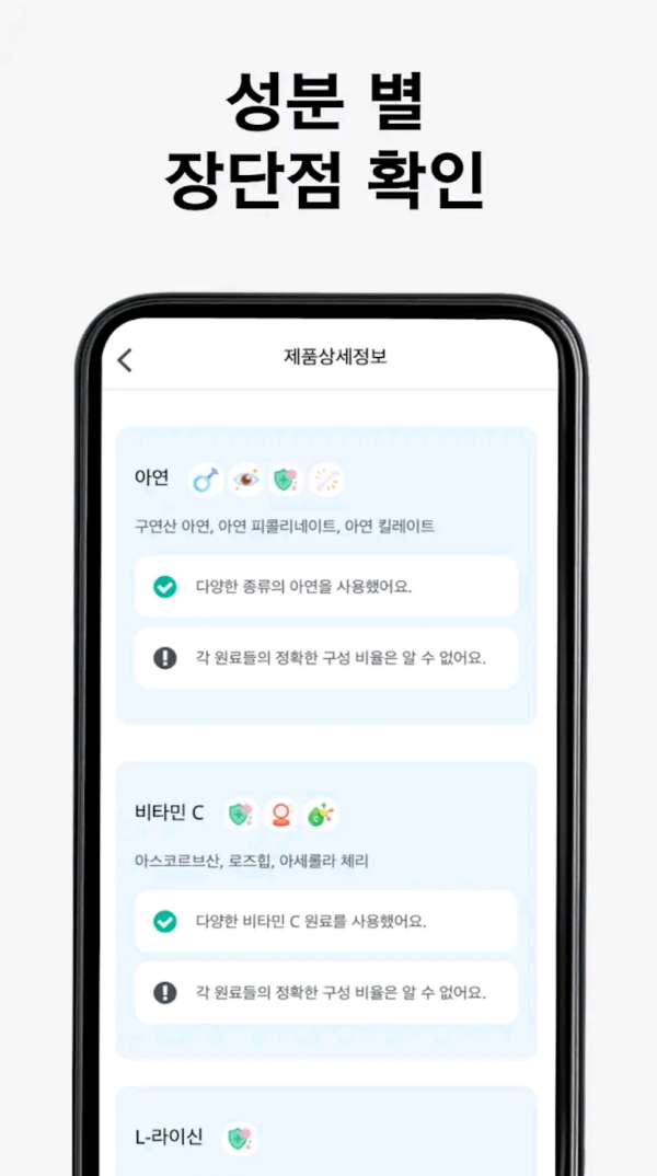 부족하거나 과한성분이 무엇인지 주의사항을 알 수 있어요.